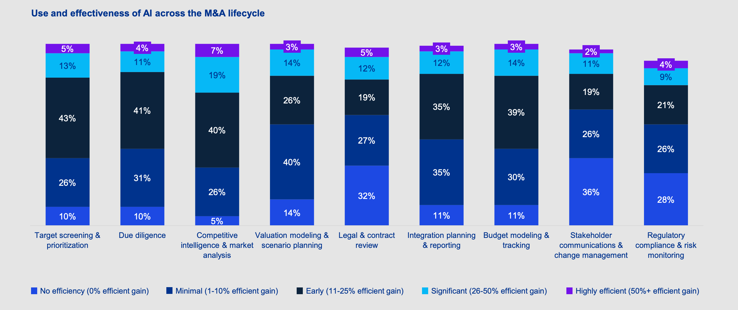 56% of surveyed organisations are deploying agentic AI in due diligence and valuation, 53% in deal sourcing and strategy, 45% in post-merger integration